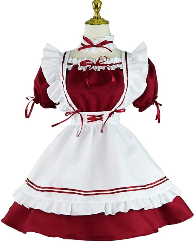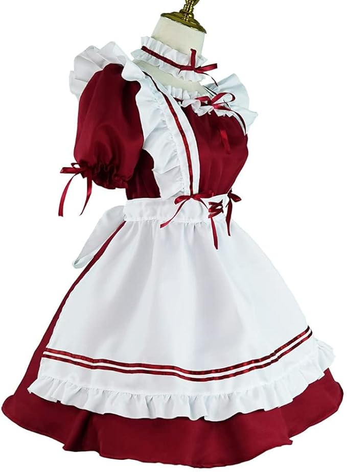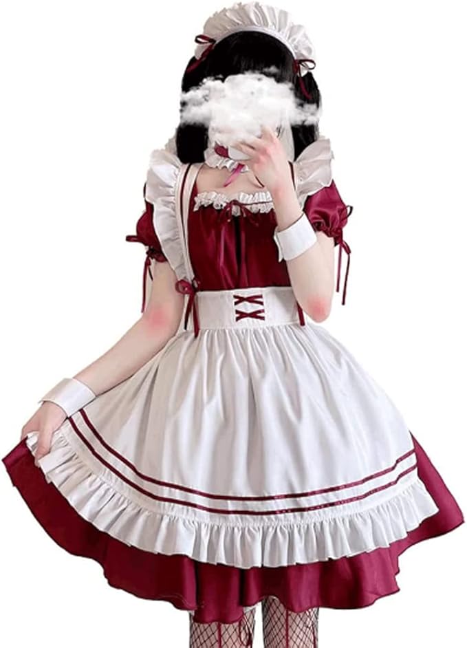 [ANONIE] メイド服 コスプレ仮装 初心者 セット かわいい コスチューム ホワイト+ブラック 豪華セット c