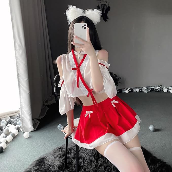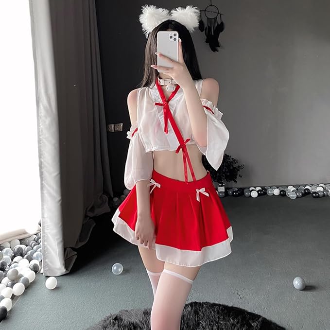 [SHLYMP] 巫女服 和服 巫女 コスプレ セクシー エロ 過激 エッチ な えろい コスチューム ランジェリー 下着 ベビードール みこさん みこ 可愛い かわいい 透け シースルー 神社 レディース お正月 節分 大人 みこ 和風 和装 着物 巫女さん ハロウィン 衣装 仮装 ミニスカート Tバック セット フリーサイズ 赤 アニメ