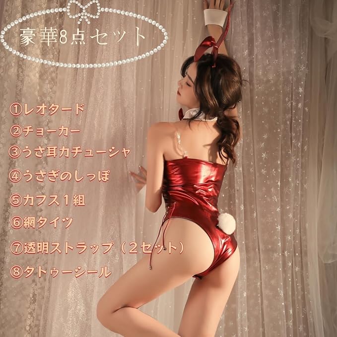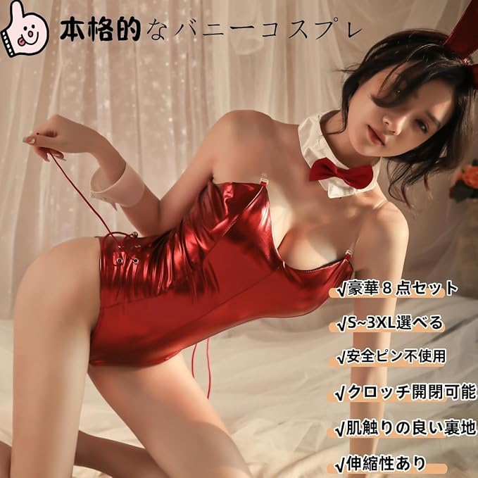 [COSSA] バニーガール コスプレ 豪華8点セット S-3XL選べる セクシー 伸縮性 バニー コスプレ 大きいサイズ うさぎコスチューム (安全ピン不使用 クロッチ開閉可能 裏地あり) ハロウィン 仮装