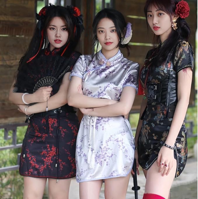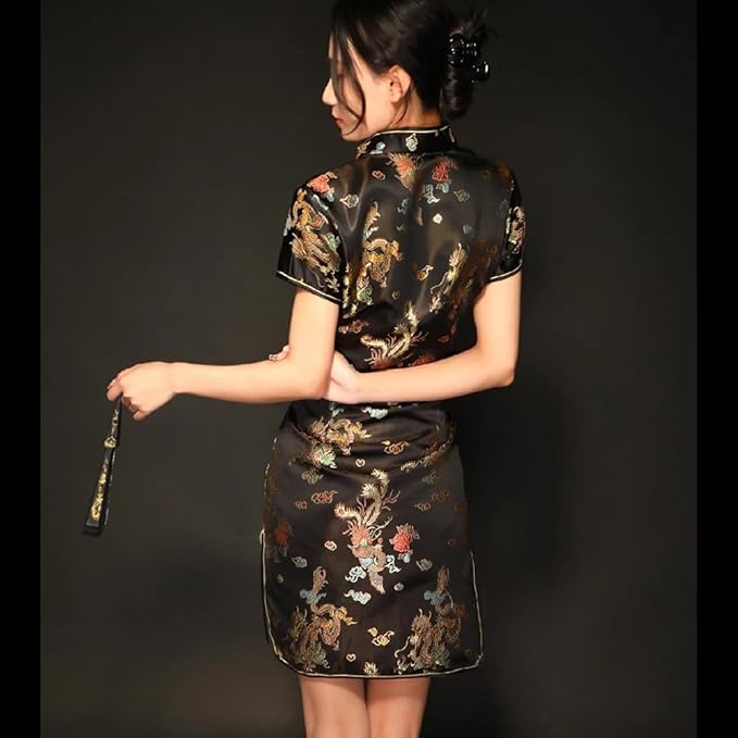 [Limspace] チャイナドレス ミニ チャイナ服 レディース サテン ワンピース 半袖 膝上 梅花柄 龍と鳳凰柄 ファッション エレガント 旗袍 ダンス 舞台衣装 パーティードレス 結婚式 ハロウィン コスプレ衣装 f