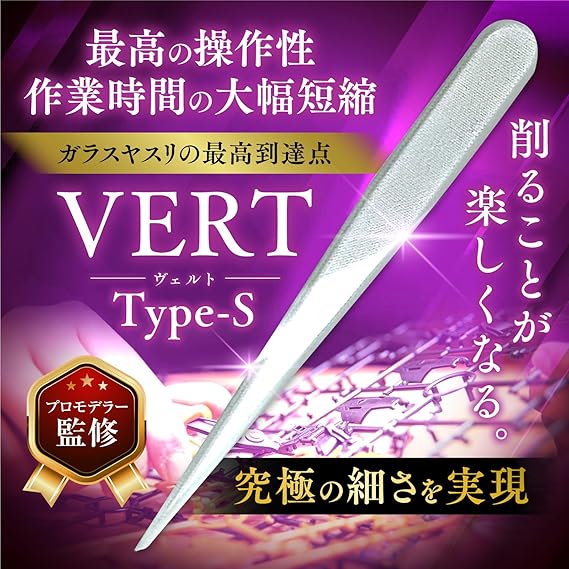 【お客様の声を聴き改良】お客様から多く寄せられた、「VERTヤスリをさらに細くして欲しい」という声をいただき改良しました。プロも満足の超極細ガラスヤスリが誕生しました。