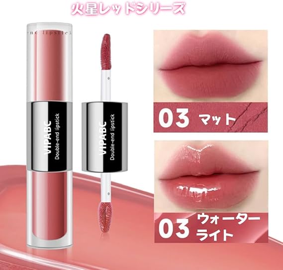 LiangNiShi 2in1 リップティント ダブルエンド マット&ツヤ 長時間キープ 高発色 ウォータープルーフ 保湿リップ 日常&パーティー 全3色 (03#火星レッドシリーズ) a