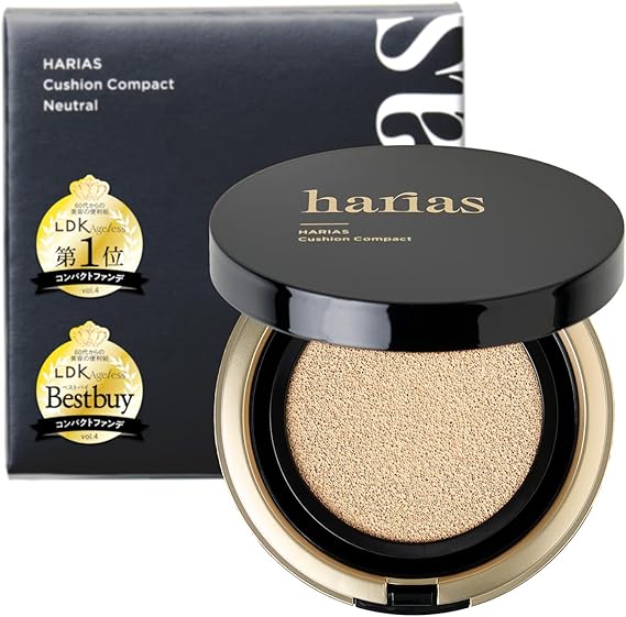 【美容液級ツヤ肌ファンデ】HARIASクッションファンデーションは全年齢肌向けに対応!ナチュラルなツヤ仕上げで、シミ・くすみをカバーしながらハリのある素肌を育みます。24時間崩れにくく、忙しい毎日のメイクをサポート。