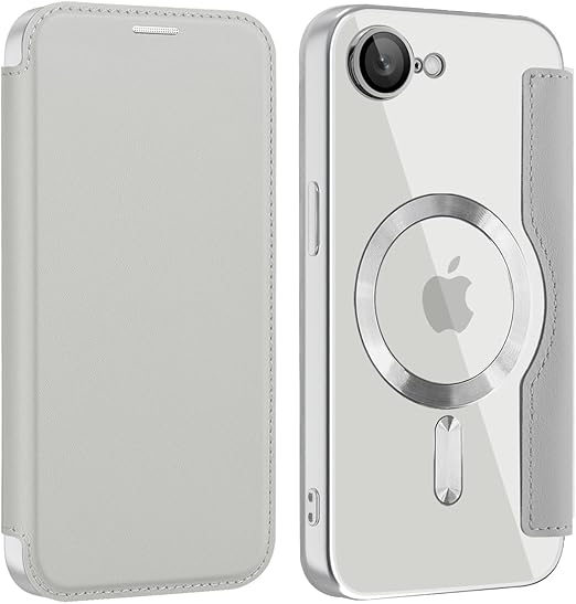 【REHOOF】iPhone 16e ケース 手帳型 magsafe対応 6.1インチ 背面 透明 クリア 財布型 アイフォン 16E ケース マグセーフ 手帳 ワイヤレス充電対応 カード入れ PU革 レザー いphone16 SE4 スマホケース 軽量 薄型 防塵 耐衝撃 全面保護 スマホカバー(グレー) a