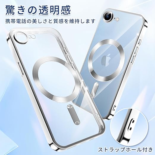 iPhone 16e ケース MagSafe対応 クリア メッキ加工 アイフォン 16e スマホケース 耐衝撃 TPU ワイヤレス充電対応 いpほね 16e カバー ストラップホール付き 薄型 透明 超軽量 黄ばみにくい 柔軟 滑り止め (シルバー) a