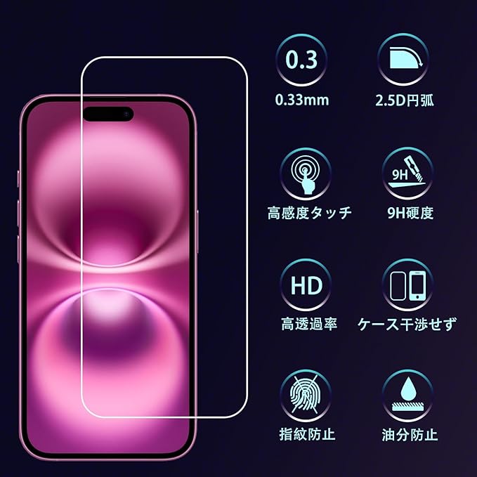 対応機種:iPhone 15 / 16 フィルム 強化ガラス 液晶保護フィルム