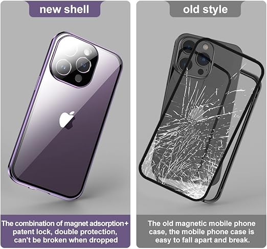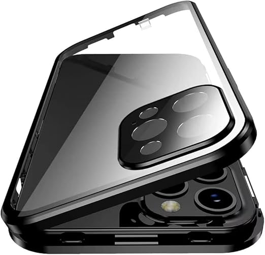 iPhone 15 ケース 全面カバー ロック機能付き+マグネット式 両面クリア強化ガラス 安全ロック カメラ保護 アルミバンパー アイフォン15 ガラスケース 両面ケース 透明 (iPhone15, 黒) a