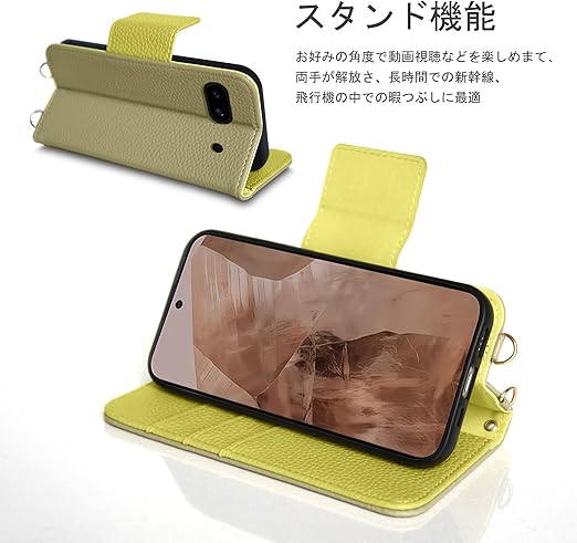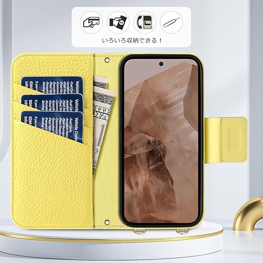 【カード収納&横置きスタンド】手帳型ケース、内側に実用性のカード入れポケット×3、内側ポケット×1、カード類、現金、名刺、免許証入れなどを収納でき、通勤も通学にも楽々タイプです。水平ブラケット機能が付いて