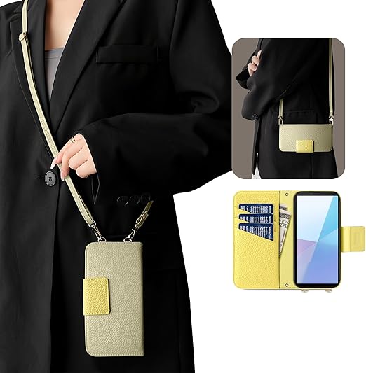 Kahper For arrows We2 ケース 手帳型 ショルダー バイカラー スマホケース アローズ F-52E おしゃれ かわいい 女性 レトロ arrows we2 f-52e ケース カード収納 シンプル 上品 we2 カバー マグネット式 スタンド機能 肌感レザー 携帯ケース f-52e ストラップ 人気 エレガント レディース 手作(アプリコット メ イェロー) a