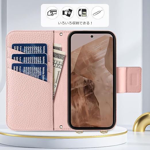 【カード収納&横置きスタンド】手帳型ケース、内側に実用性のカード入れポケット×3、内側ポケット×1、カード類、現金、名刺、免許証入れなどを収納でき、通勤も通学にも楽々タイプです。水平ブラケット機能が付いて