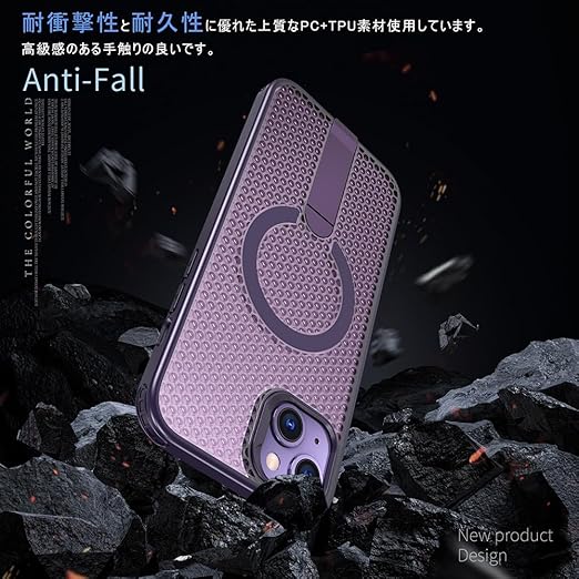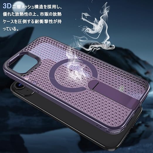 YUZOR for iPhone 15 Plus ケース 冷却 放熱 メッシュ スマホケース MagSafe対応 スタンド付き アイフォン15 Plus カバー 滑り止め 指紋防止 耐衝撃 米軍MIL規格取得 ストラップホール付き 6.7インチ (iPhone15plus 紫) FX-15plus-zi a