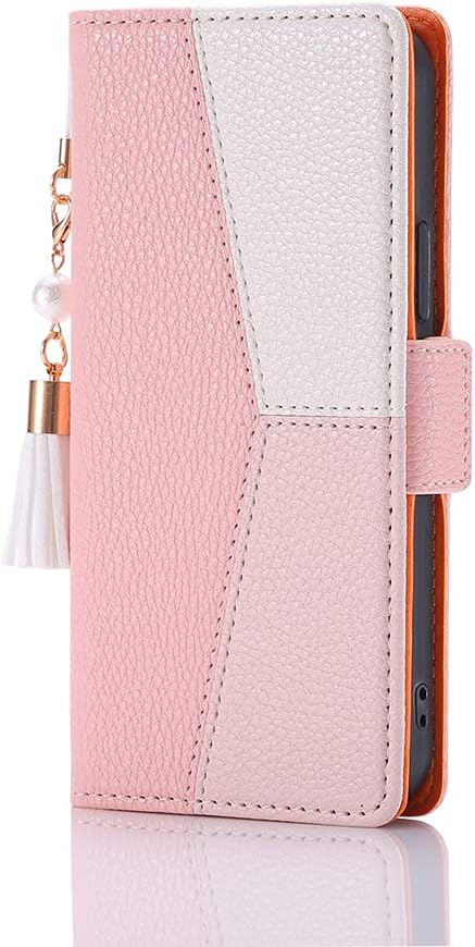 iPhone14 ケース 手帳型 おしゃれ 6.1インチ対応 全面保護 顆粒感と凹凸感の表層レザー iPhone 14 手帳型ケース 可愛い 安い 良い手触り スマホケース iPhone14 手帳型 使いやすい 真珠タッセル付き スタンド機能 ツートン プレミアム iPhone14 手帳型携帯ケース 人気 アイフォン14 財布型ケース 多機能 マグネット付き ソフトカバー ピンクとホワイト a