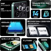 【最大24GB+128GB、MTK 5G プロセッサ】最適なゲームプレイと画像処理をお楽しみください。24GB RAM+128GB ROMストレージは、24GB RAMに拡張可能です(18GB仮想メモリ搭載)。128GB ROMは最大1TBまで拡張可能で、より多くのメディアを保存できます。MTK Dimensity 6100+ 5Gプロセッサーは、先進の6nmチップセットとUltraSave 3.0+テクノロジーを搭載し、優れた高速接続性、低消費電力、長バッテリー寿命を実現します。