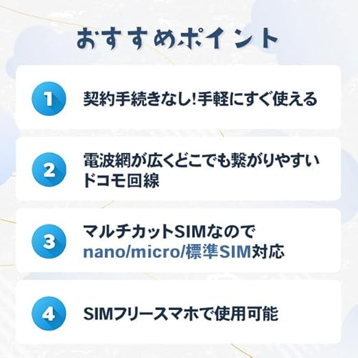 【大手キャリア NTTドコモの通信網で高速通信可能】 利用開始日から180日間10GBまで利用可能。 10GB超えた時点または有効期限を超えた時点で停止になります。 ※SIMを挿入し電源を入れた日(APNを設定した日)から日数カウントとなります。