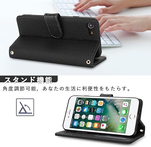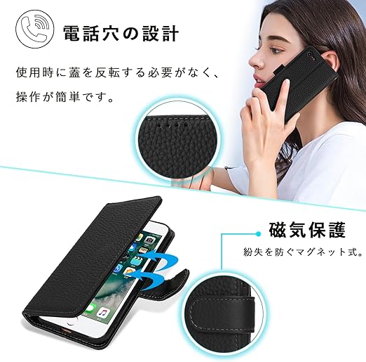 DEYHU 対応 iPhone SE ケース 第2世代 第3世代 手帳型 カード収納 スタンド機能 iPhone 8 ケース 本革 大容量 耐衝撃 カード収納 iPhone 7 ケース 手帳型 アイフォンse ケース レザー ブラック a
