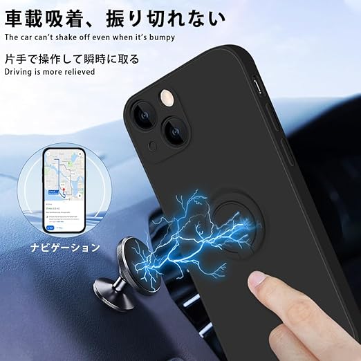 ZHUAZHULE iPhone13 ケース リング付き シリコン アイフォン13 スマホケース スタンド機能 カバー 耐衝撃 レンズ保護 360°回転 車載ホルダー ストラップホール付き 滑り止め 指紋防止 薄型 (ブラック) a