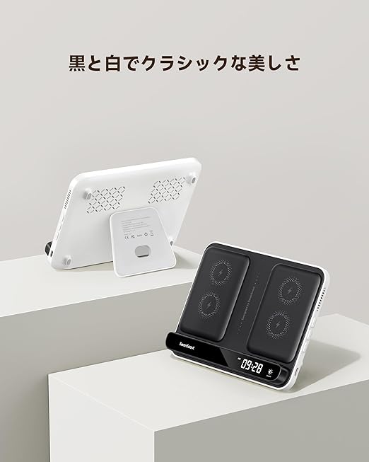 【ワイヤレス充電器 2台同時】SwanScout 504は、2台のスマホを同時にワイヤレス充電できるスタンド型充電器です。仕事用・プライベート用のスマホを同時に充電したり、家族とシェアして使ったりと、多様なニーズに対応。複数のケーブルを使う必要がなく、デスク周りをすっきり保ちます。