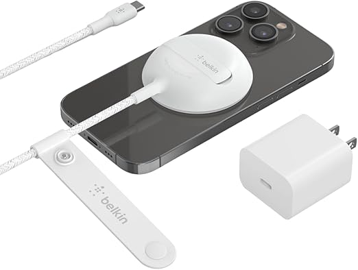 Belkin MagSafe認証 ワイヤレス充電パッド iPhone 15/14/13/12 最大15W急速充電 キックスタンド付き ホワイト WIA004btWH a