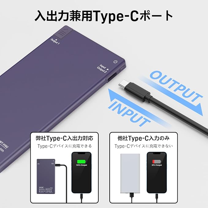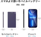 超薄型、軽量モバイルバッテリー:クレジットカード6枚分の厚さしかありません。高品質スチール素材を採用し、薄くて持ちやすいモバイルバッテリーです。軽いだけでなくとても薄いので、スマホと一緒に持って操作してもほとんどストレスにもならないです。財布やポケット、カバンに入れてもかさばりません。