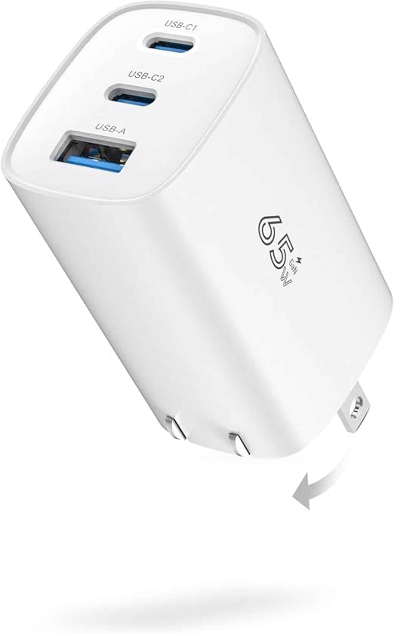 TOPADRE 急速充電器 65w PD 充電器 Type-C USB 3ポート三台同時充 電 [超低温/GaNIII技術/折りたたみ式プラグ] タイプc 充 電器 対応MacBook/iPad/Android/Windows PC PSE認証済 PD3.0 対応iphone 16/15/14/13 フルシリーズ対応 白 a