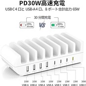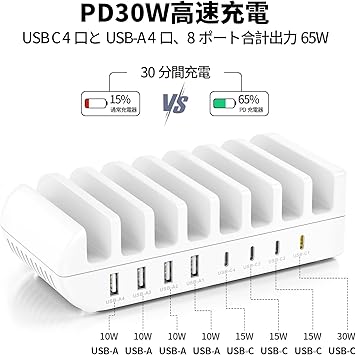 ANNIBER USB充電ステーション 8ポート iphone16 卓上充電スタンド PSE認証済 合計65W 卓上収納 8台同時スマホ/タブレット対応 a
