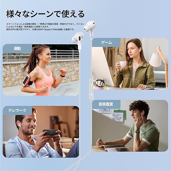 【リモコン簡単操作・クリアな通話】イヤホン 有線 ケーブルにはリモ