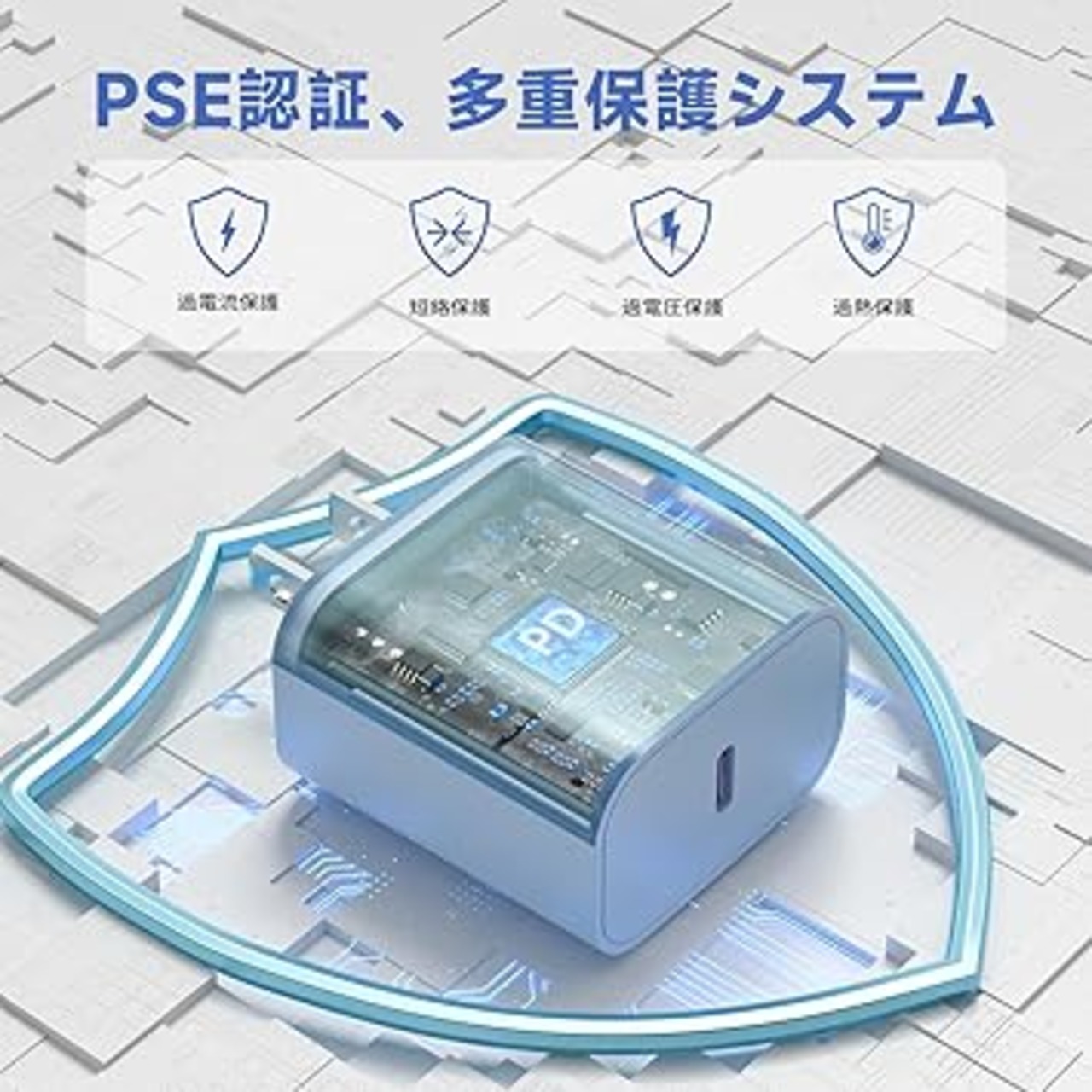 【MFi&PSE認証済で安心・安全】当社のUSB Type-C PD20WアダプタはPSE認証を取得し、厳格な品質管理を通じて、更に過熱、過充電、過放電および回路ショート防止など給電保護