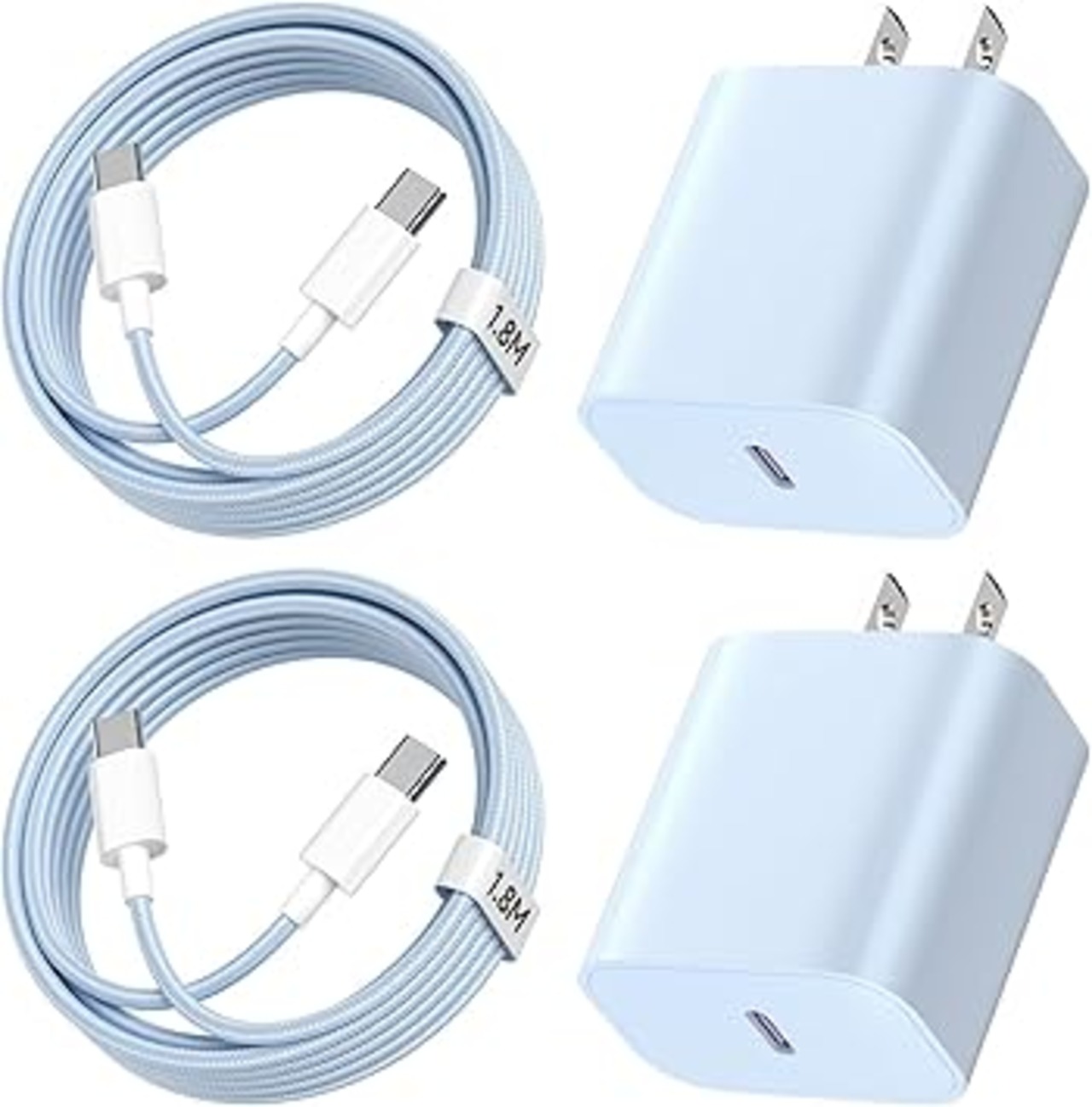 For iphone16 iphone15-充電器-タイプc 20W-PD-急速充電器 USB-C [2個セット/ MFi&PSE認定] 1.8m USB-C TO C ケーブル2本付き タイプC充電器 iPhone 16/ 15/ Pro/Pro Max/iPad Pro 12.9 /iPad Pro 11/世代に対応 a
