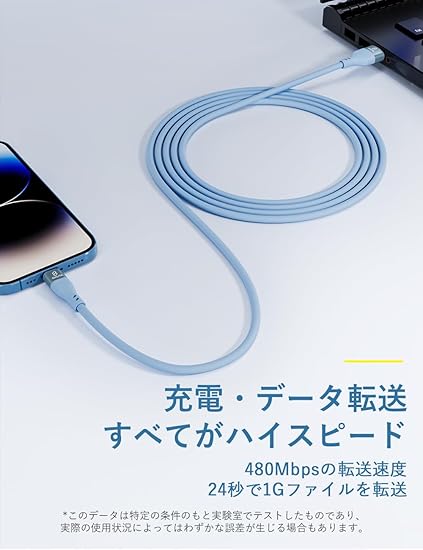 iphone 充電 ケーブル iphone 充電コード 急速充電 Type-C ライトニング ケーブル 充電器 iphone ケーブル 純正 シリコンケーブル スマホ MFi認証 (ラベンダー紫, 2m) a