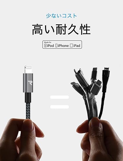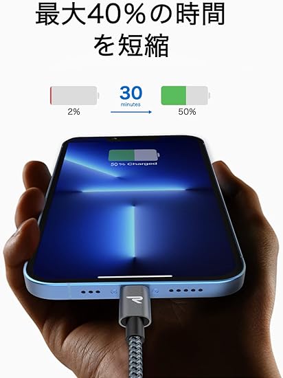 【最新Apple Mfi認証C89コネクタ採用】このusbライトニングケーブルはApple Mfi正規認証品(Mfi UPC/EAN 600748751068)です。最新Apple 認証C89Lightningコネクタを採用しますので、充電ケーブルによる損傷と警告メッセージがなくて、デバイスを安全に充電できます。また、VW-1難燃試験を合格し、大切なデバイスに過熱保護を提供でき、より高い耐久性を実現します。