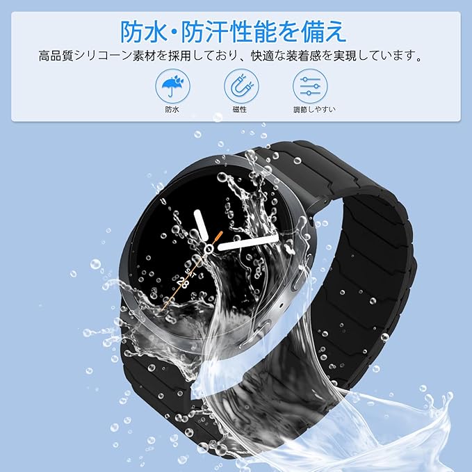 CiimWaa バンド for Samsung Galaxy Watch 8 40mm 44mm/Galaxy 8 Classic 46mm 2025 用 シリコン 時計バンド 強力な磁気 スマートウォッチ交換 マグネット 無段階調整 時計ベルト 超薄型 男女兼用 快適性 交換ベルト Galaxy Watch8 Classic 用 a