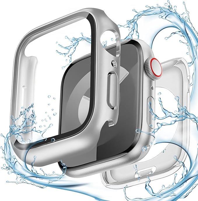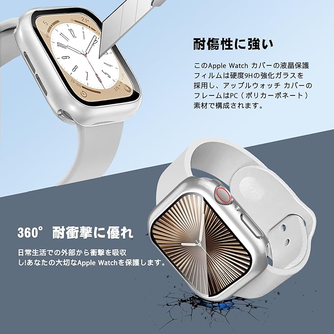 【360度防水設計】 CAERMA for アップルウォッチ カバー Series 10/9/8/7/SE2/SE/6/5/4 45mm 超薄型 for Apple Watch カバー 2in1防水 PC素材 硬度9H強化ガラス 高透過率 指紋防止 耐衝撃 全面保護 for Apple Watch ケース シルバー a