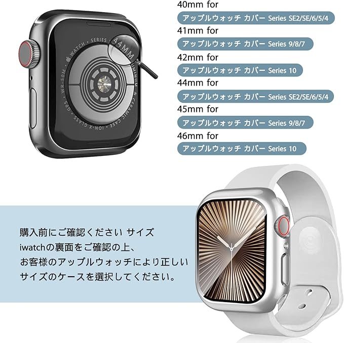 【対応機種】45mm専用のアップルウォッチカバー、 Apple Watch Series 9/Series 8/Series 7 対応いたします。※ご購入する前に、まずはアップルウォッチ裏面で記載されたサイズをご確認してください。