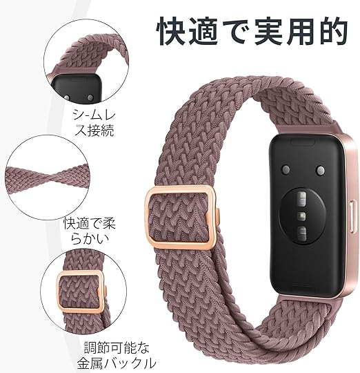[AGUPERFIT] コンパチブル Huawei Band 10/9/8 バンド - 3本セット、ナイロン編み伸縮性交換ベルト 無段階に調整なステンレススチールループ付き エレガントで快適な ファーウェイバンド 10/9/8に対応 (サンドピンク/スターライト/スモークバイオレット) a