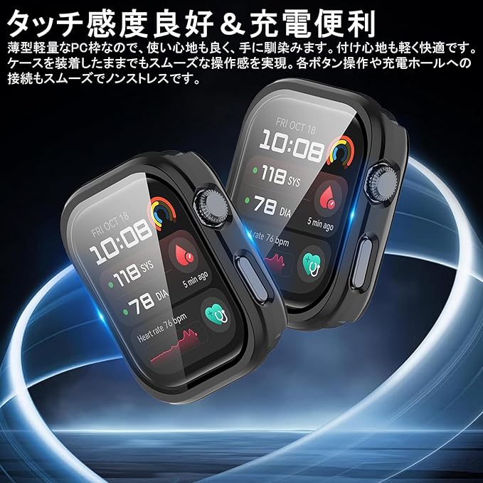 【全面保護】この製品はPC+ 強化ガラス素材を採用して、日常生活での衝撃から Watch を保護します。硬度 9H の強化ガラスで、超クリアな画面を提供して、なお画面の損傷を防止および回避し、 Watchをしかっり保護します。
