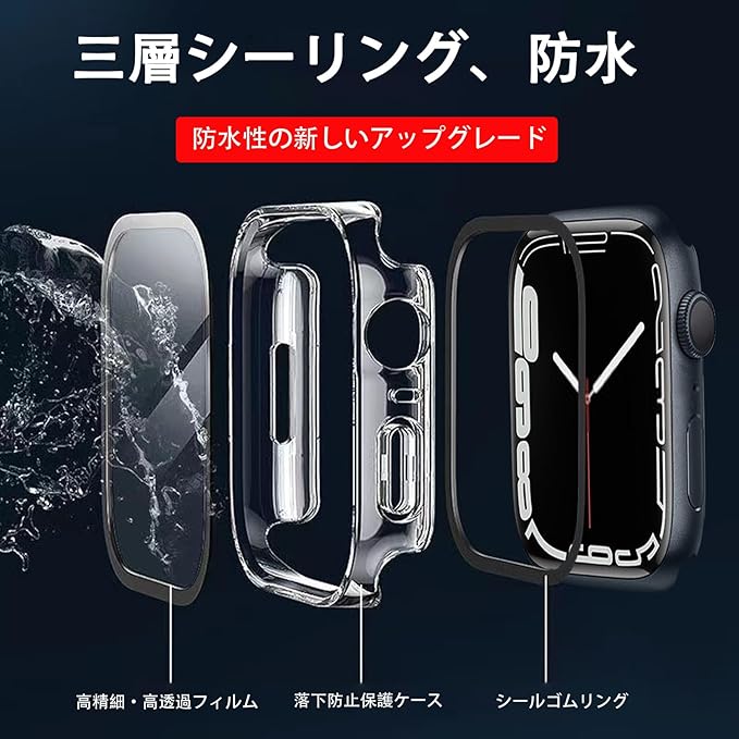 BUITFOU Apple Watch カバー Series 9/8/7 45mm 対応 アップルウォッチ用 ケース 防水 一体型 新デザイン 3D直角エッジ Apple Watch ケース対応 全面保護 超薄型 装着簡単 耐衝撃 高透過率 指紋防止 傷防止(45mm,光沢のクリア) a