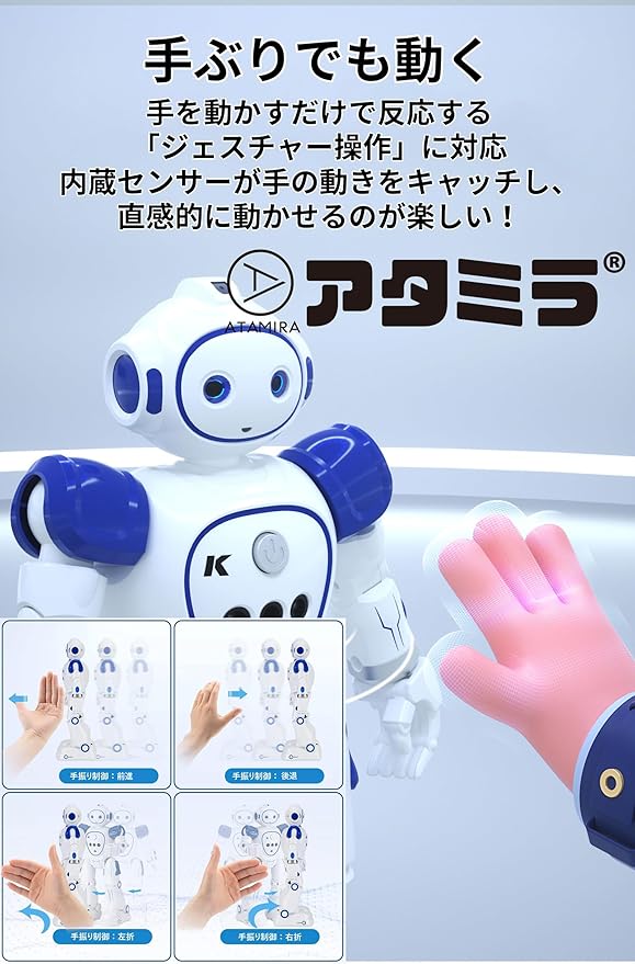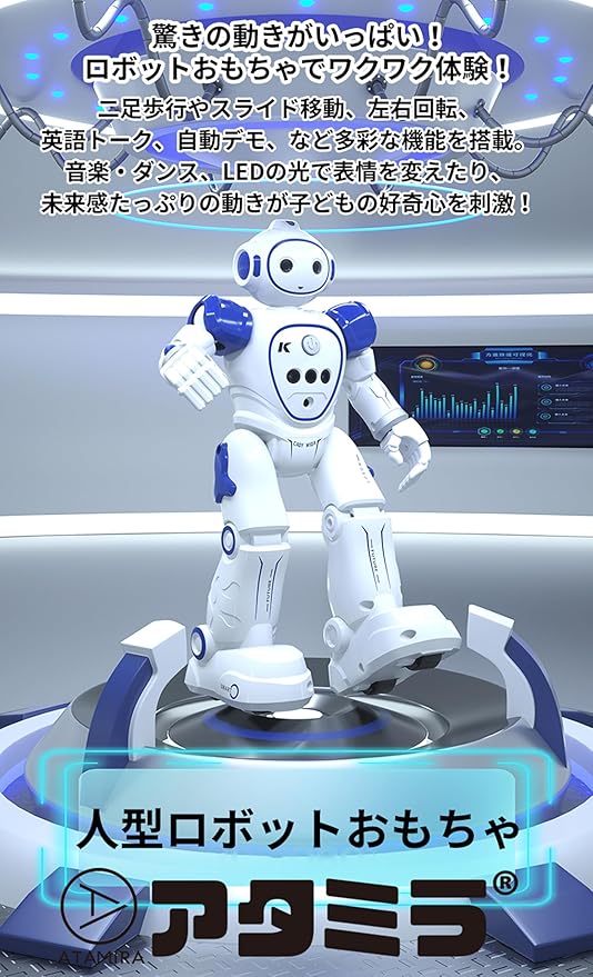 アタミラ(ATAMIRA) スマートロボットおもちゃ 子ども用 英語のみ ダンス ジェスチャー操作 二足歩行 USB充電式 プレゼント 小学生 (ブルー) a