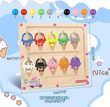 【感覚遊びを促進】モンテッソーリ磁石おもちゃは、55個のカラフルな磁石ボールを使用しており、子供の手と目の協調能力、忍耐力、集中力を高めるのに最適です。数字1から10までの異なるアイスクリーム色で、視覚と認識の発達をサポートします。