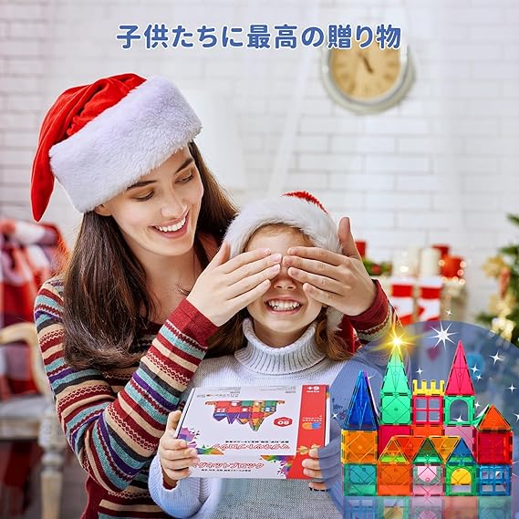 マグネットブロック 80 ピースの磁石タイル マグネットおもちゃ STEM 学習用 教育建設玩具 6歳以上の男の子 女の子 教室や幼稚園 誕生日ギフト a