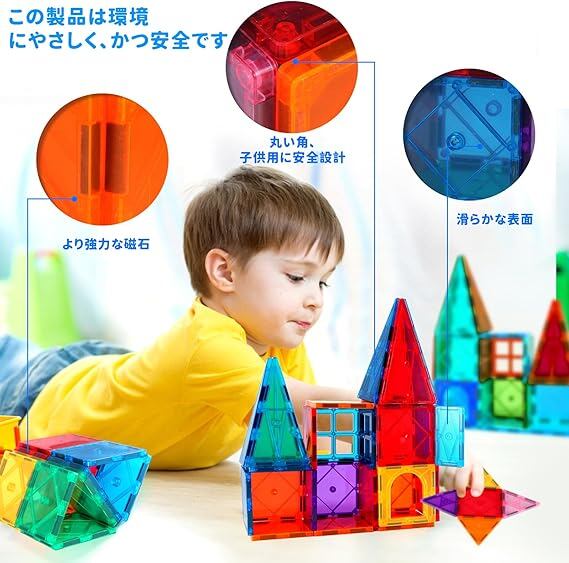 磁力アップ、新デザイン:80ピースすべてに磁石が搭載されています。強力な磁力により、もっと簡単かつ迅速にしっかりとした作品を作ることができ、簡単に崩れることはありません。新たにデザインされたラインで、引っかき傷を防ぎ、長期間にわたり鮮やかな色となめらかな表面を保つことができます
