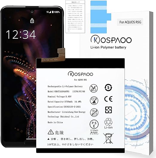 KOSPAOO for AQUOS R5G バッテリー互換 容量3730mAh 3.85V UBATIA304AFN1電池 PSE認証 適用SH-51A/908SH/SHG01/SH-RM14機種 交換修理用 Rechargeable Li-ion Battery 高温・低温耐性 600〜800サイクル寿命 適用AQUOS R5G電池【No Tool】 a