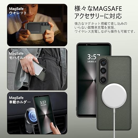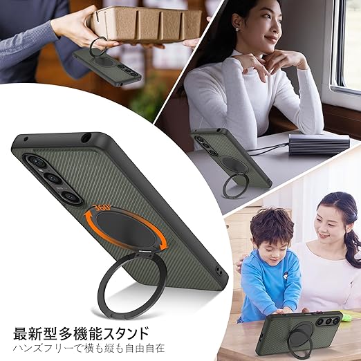 BENTOBEN Xperia 1 VI ケース SO-51E | SOG13 ケース MagSafe対応 360°回転スタンド 縦横両対応 カーボン風デザイン 耐衝撃 マグネット内蔵 車載スマホホルダー対応 ストラップホール付き エクスペリア1 VI スマホケース カバー グリーン a