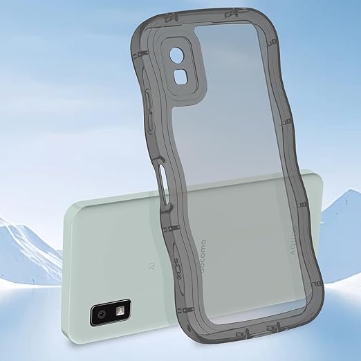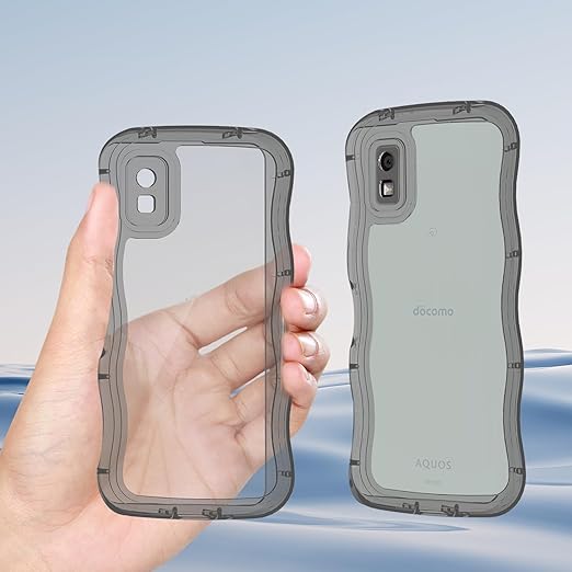 AQUOS wish3 ケース クリアブラック ウェーブ SH-53D TPU波状のバンパー 半透明 スマホケース かわいい うねうね アクオス ウィッシュ3 SH-53D ウェーブ デザイン 可愛い 韓国 女性用 薄型 人気 おしゃれ 耐衝撃 ストラップホール付き(ブラック) a