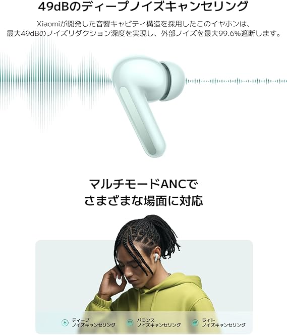 シャオミ(Xiaomi) ワイヤレスイヤホン Redmi Buds 6 薄軽ボディ 49dBアクティブノイズキャンセリング 3Dオーディオ Google Fast Pair 42時間音楽再生 マルチモードANC対応 ワンタッチ撮影モード コーラルグリーン a