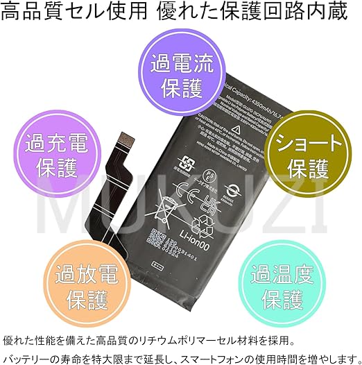4306mAh元の容量 互換 バッテリー: 私達のGoogle Pixel 6aバッテリーは元の電池容量4306mAhと同じです、エネルギー変換効率は99%を超え、電池サイクル寿命は500-800回に達した、対応GLU7Gバッテリー交換。