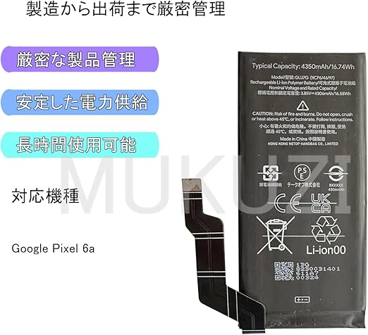 MUKUZI for Google Pixel 6a 互換 バッテリー GLU7G 電池 PSE認証 適用GB17L G1AZG GB62Z GX7AS機種 互換修理用 対応 Pixel 6a電池【工具セット】 a