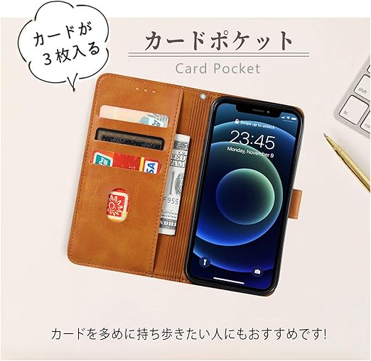 【手帳型スマホケース】 ツヤ感のある上質なPUレザー水に強