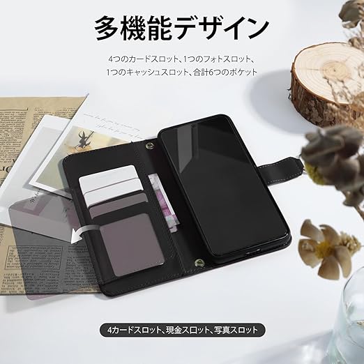 ★【カード収納機能・スタンド機能】Redmi 14C ケースの内側には6つの独立したポケットがあり、クレジットカード、バスカード、IDカードなどを収納でき、持ち運びが便利で、余分なものを持ち歩かなくても旅行が