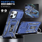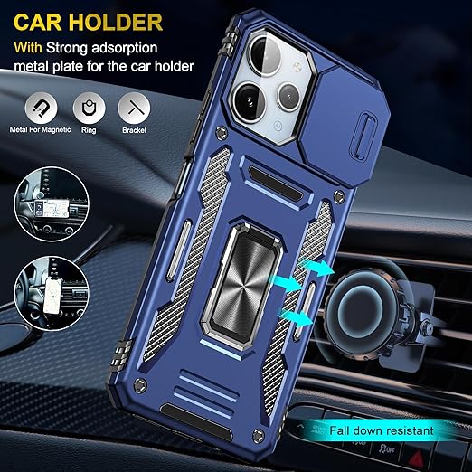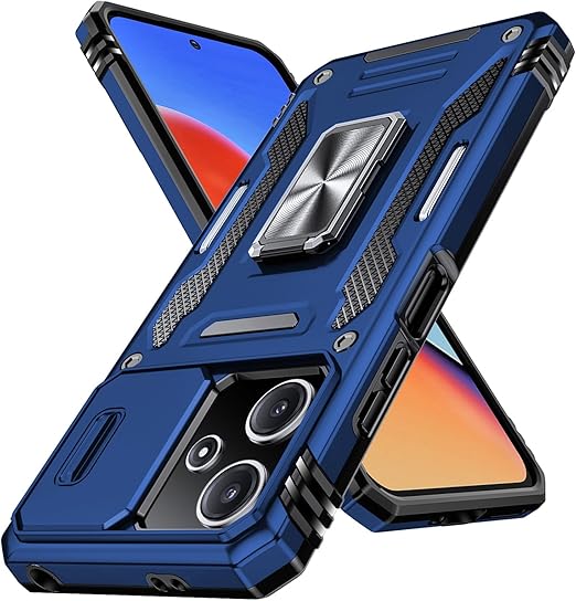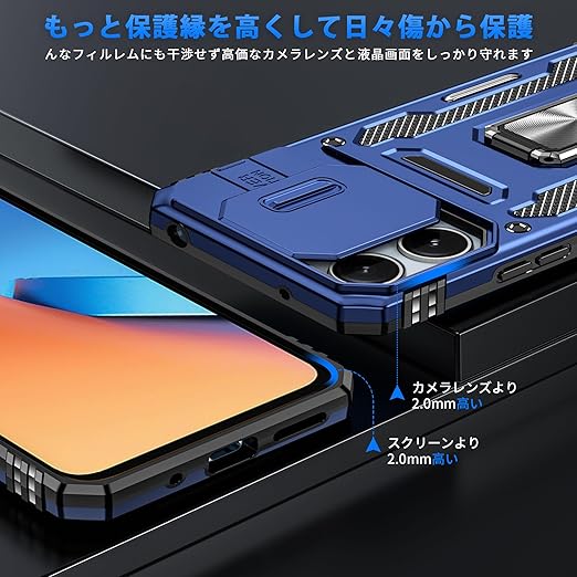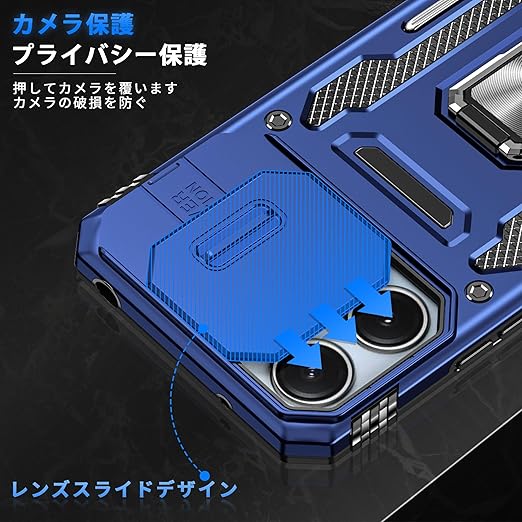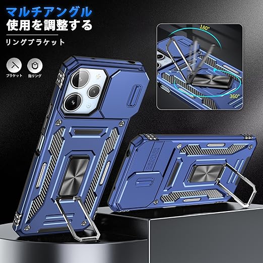 Xiaomi Redmi 12 5G/4G/ ケース Redmi Note 12R ケース リング付き スライド式カメラプロテクター付き 衝撃吸収 保護ケース PC スタンド機能 車載ホルダー対応 米軍MIL規格 金属リング 擦り傷防止 滑り止め Redmi 12 5G/4G/Note 12R カバー 耐衝撃 横置き機能 人気 青 C92-hm12 5g-04 a