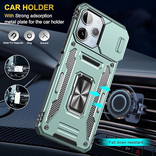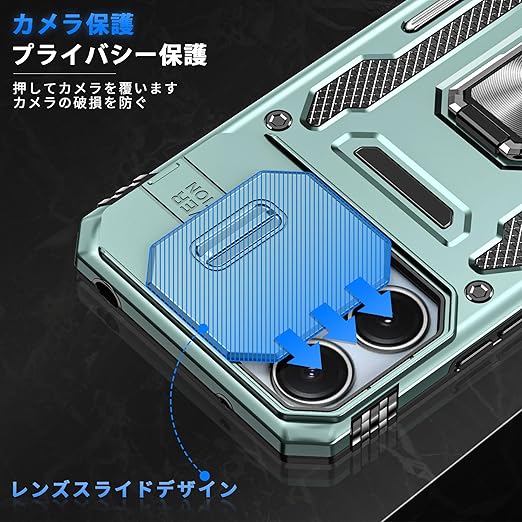 Xiaomi Redmi 12 5G/4G/ ケース Redmi Note 12R ケース リング付き スライド式カメラプロテクター付き 衝撃吸収 保護ケース PC スタンド機能 車載ホルダー対応 米軍MIL規格 金属リング 擦り傷防止 滑り止め Redmi 12 5G/4G/Note 12R カバー 耐衝撃 横置き機能 人気 浅緑 C92-hm12 5g-07 a